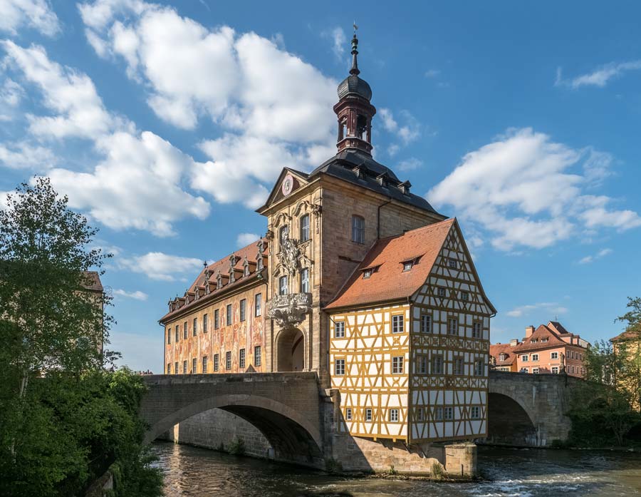 Puente de Obere y Altes Rathaus en Bamberg, Alemania